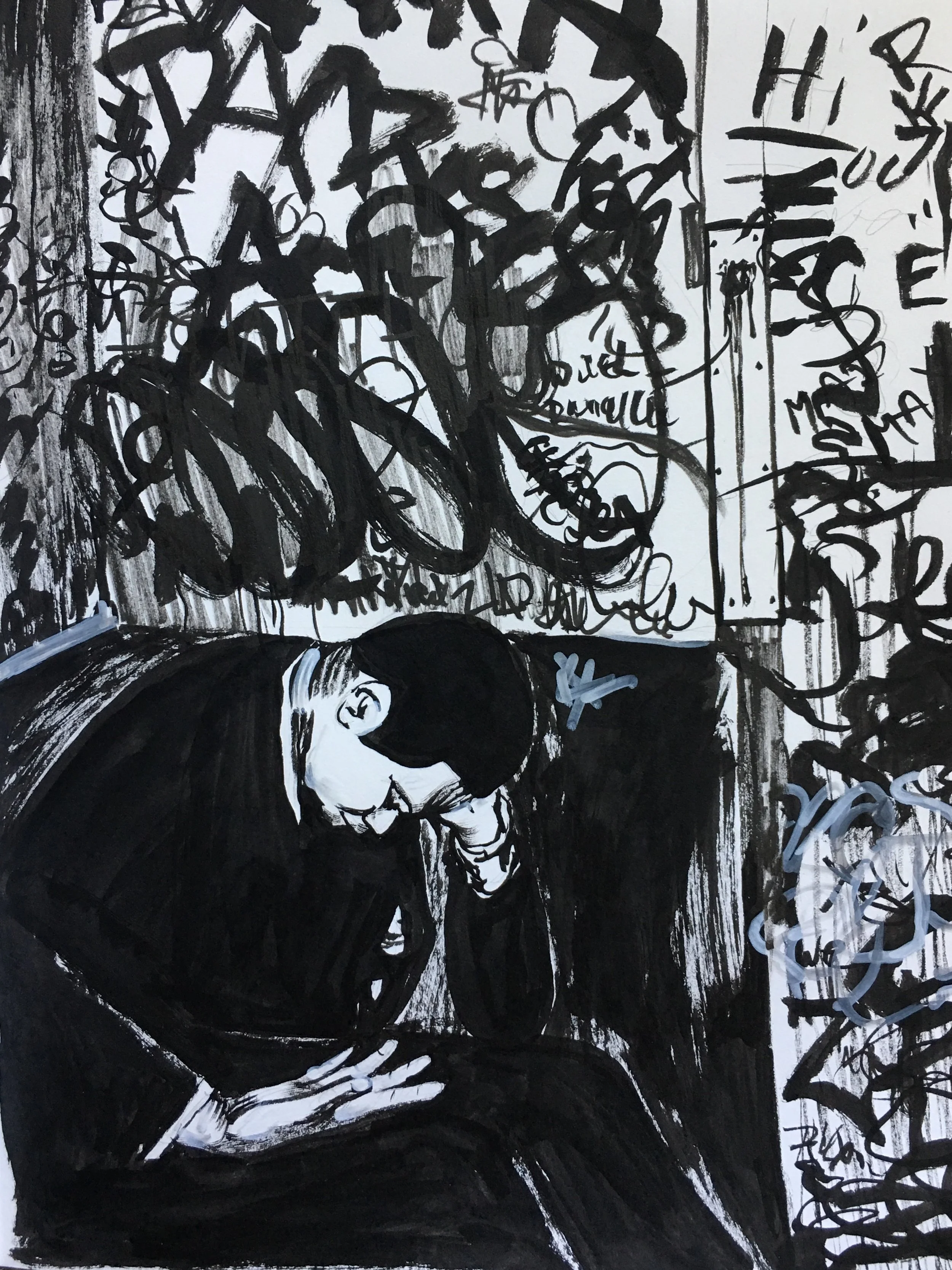Graphiti, 2018, ink on paper, 8 1/2 x 11