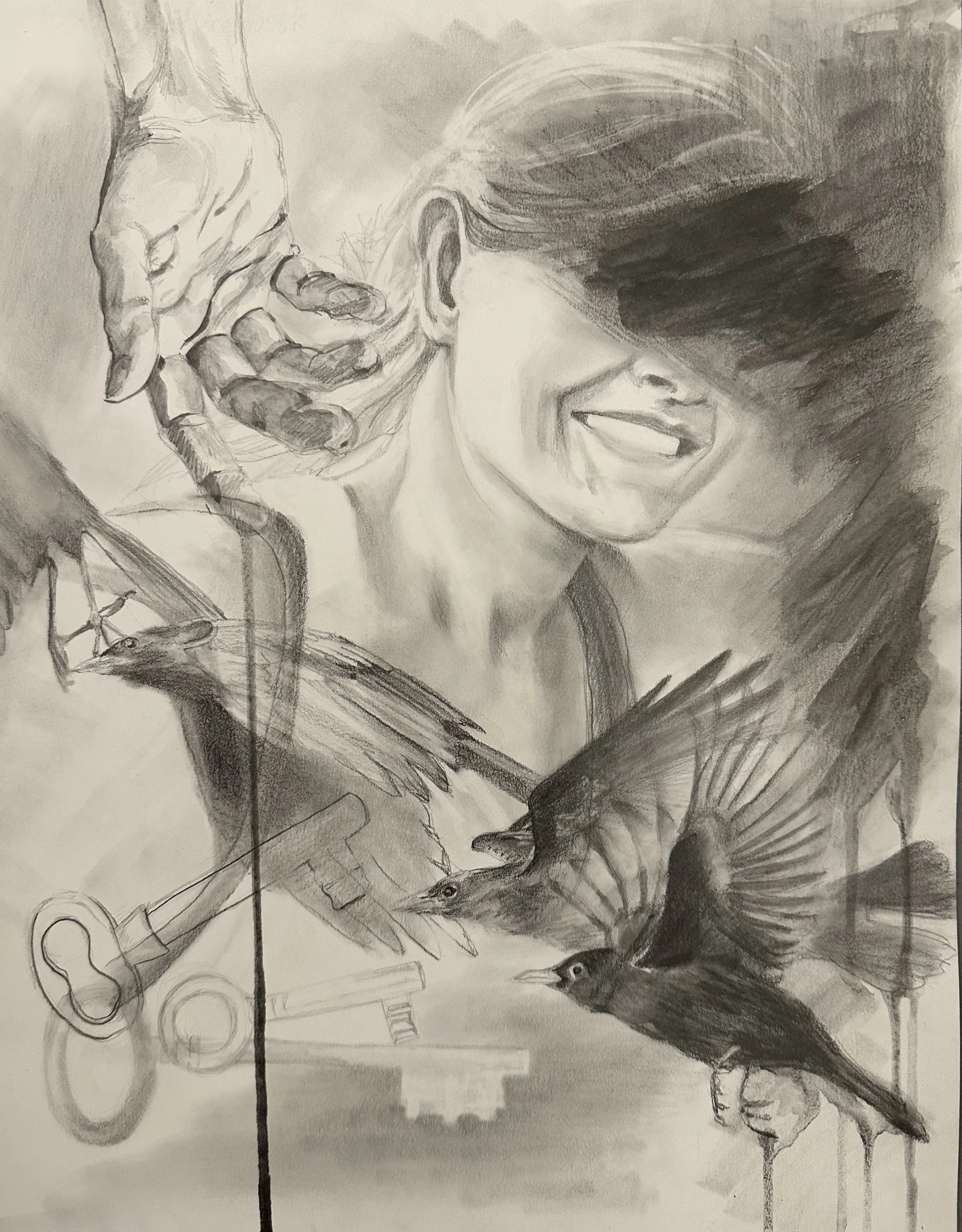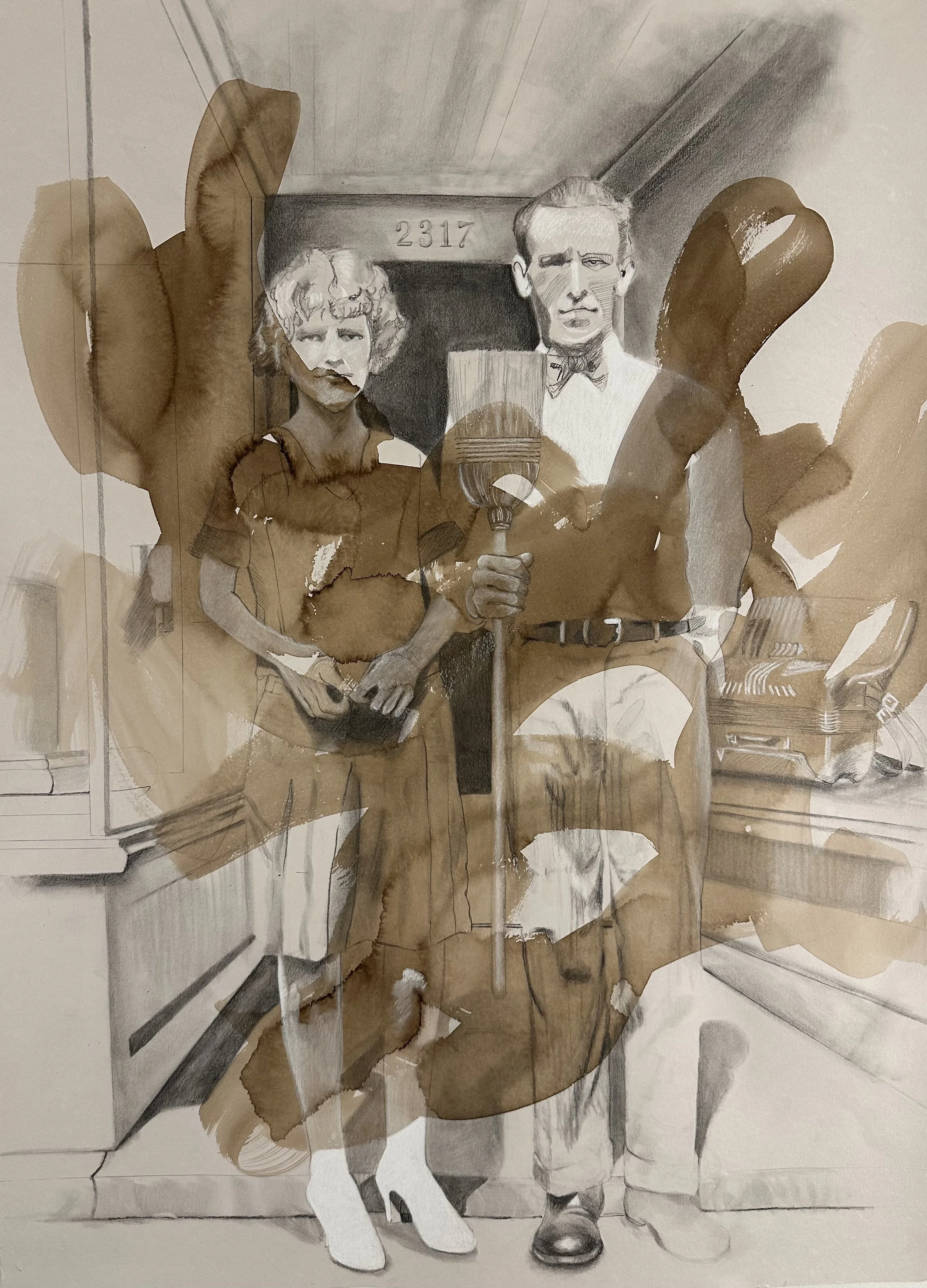 The Wedding, 2025, Graphite, Russian Sauce, pastel and collage on paper, 52 x 32 in.